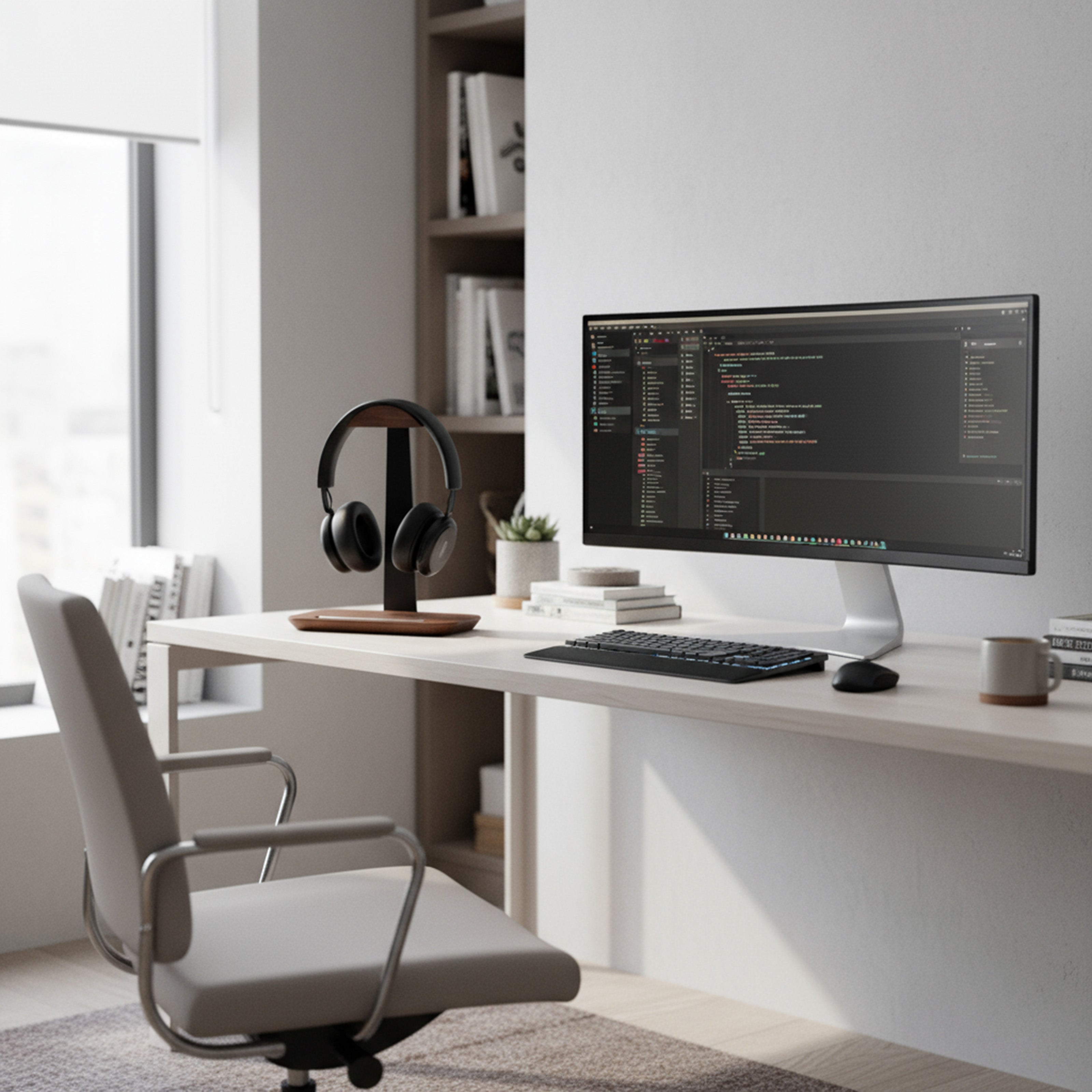 The moment you place your headphones on the stand, the desk opens up. Cords stop tangling, clutter disappears, and the space in front of you feels clear. This small shift creates a psychological transformation — your setup looks intentional, professional, and ready for deep focus.